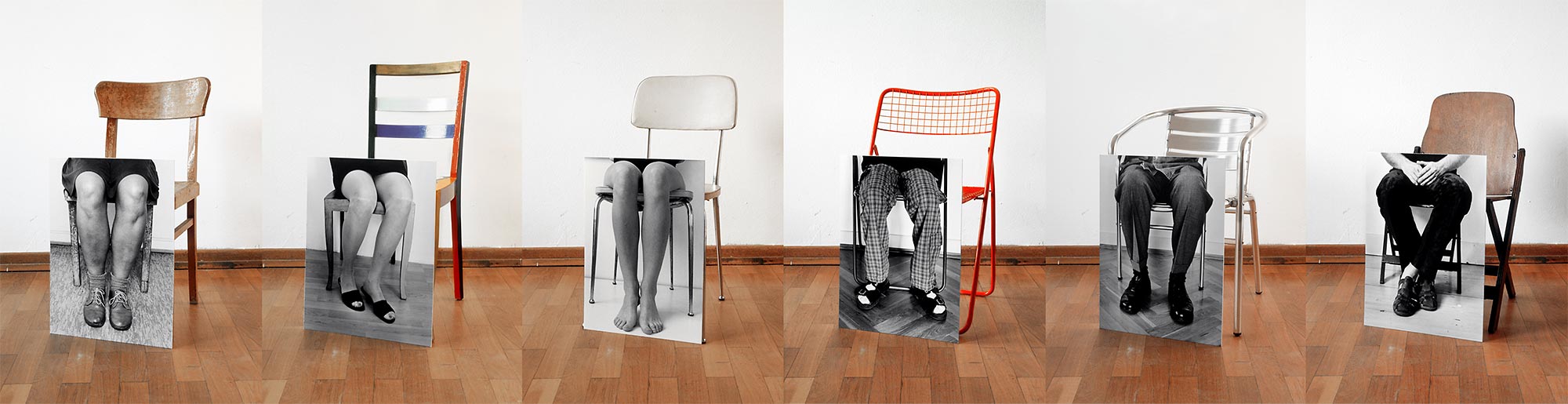 "Konsumenten I - VI", schwarz-weiß Fotografie, Baryt, 6tlg., je 40 x 60 cm, Stühle, 2000